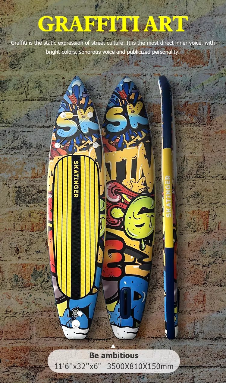 - 【𝗘𝗔𝗦𝗬 𝗧𝗢 𝗧𝗥𝗔𝗡𝗦𝗣𝗢𝗥𝗧 𝗪𝗜𝗧𝗛 𝟯 𝗛𝗔𝗡𝗗𝗟𝗘𝗦 & 𝟭𝟲𝟴𝟬𝗗 𝗕𝗔𝗖𝗞𝗣𝗔𝗖𝗞】 Skatinger paddle board features a heavy-duty 1680D fabric backpack (more durable than standard 900D materials) for easy transport. The three handles—front, rear, and middle—provide convenient lifting and maneuvering, whether you're loading it into your vehicle, moving it around, or handling it solo or with a partner.